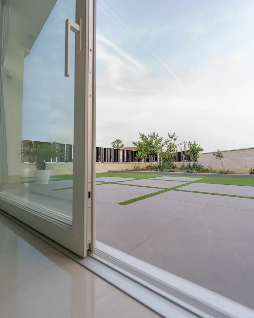 Las correderas elevadoras presentan un mecanismo de fácil manejo que acciona un sistema de elevación de la hoja antes de iniciar el rodamiento, lo que permite la seguridad y estanqueidad de la puerta al agua, al viento y al aire. Los valores de aislamiento térmico de nuestras puertas correderas elevadoras, como las de PVC y aluminio, tienen un valor Uw de 1,3 W/m2K.