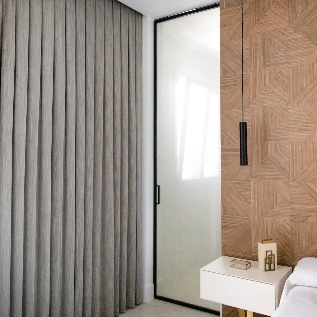 Con una altura de hasta 3 metros de alto, aporta una sensación de altos techos y ligereza al espacio, que combinado con sus líneas sectas y limpias brinda una estética muy actual.
