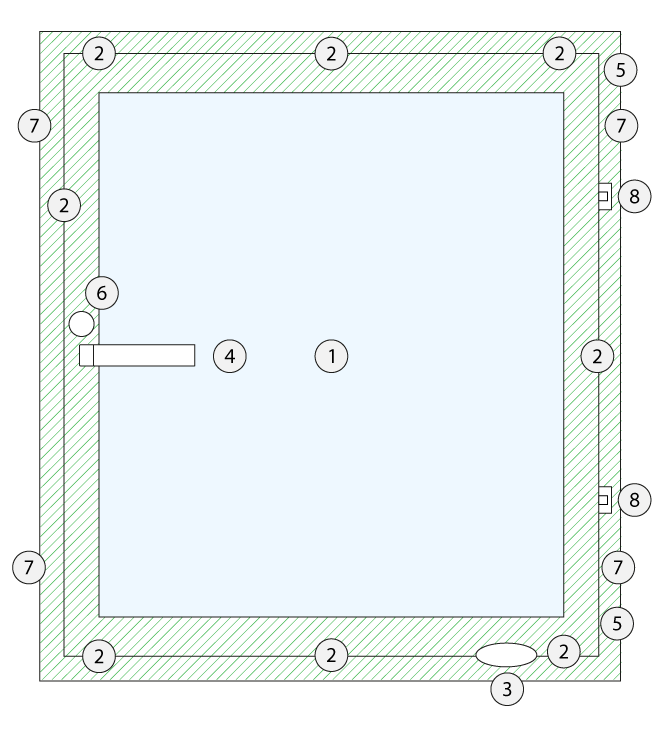 6. Imperdibles perimetrales de acero inoxidable.