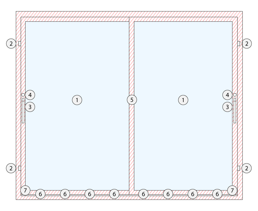 1. Bisagra invisible de seguridad en aluminio extrusionado.